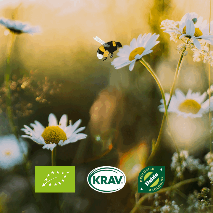 Vi har valt att KRAV-märka vår mat eftersom det innebär högre krav än EU:s regler för ekologisk produktion, särskilt i fråga om djuromsorg, hälsa, socialt ansvar och klimatpåverkan.
