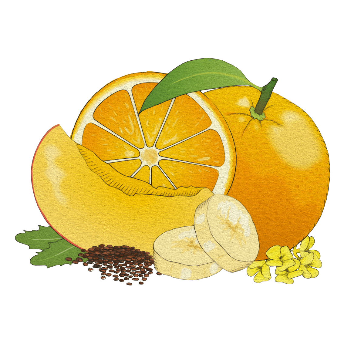 Smoothie fylld med frukt, quinoa och en skvätt kallpressad rapsolja. Naturlig källa till omega 3-fettsyror.