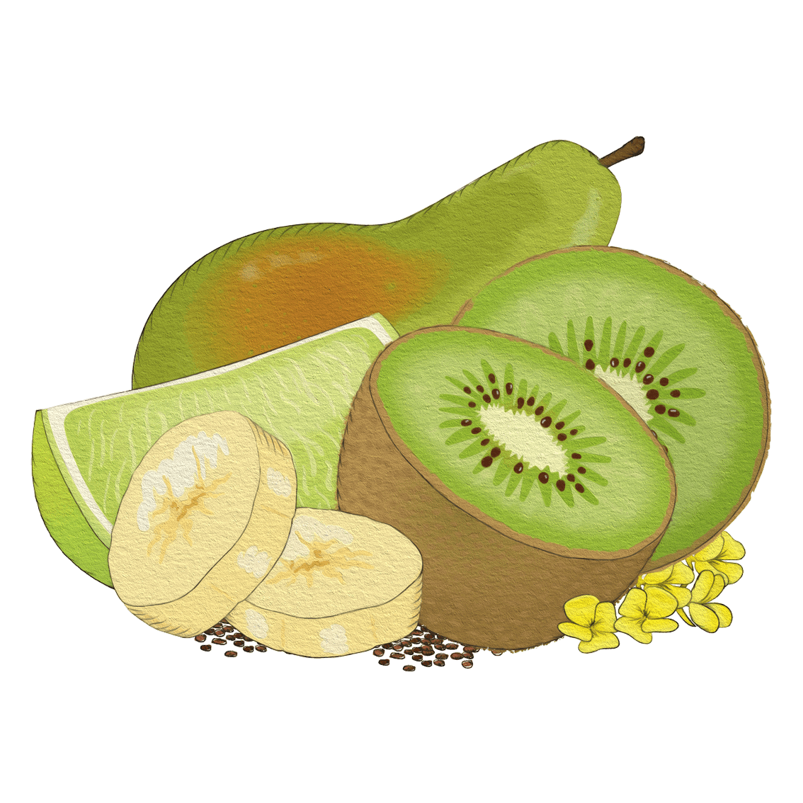 Smoothie fylld med frukt, quinoa och en skvätt kallpressad rapsolja. Naturlig källa till omega 3-fettsyror.
