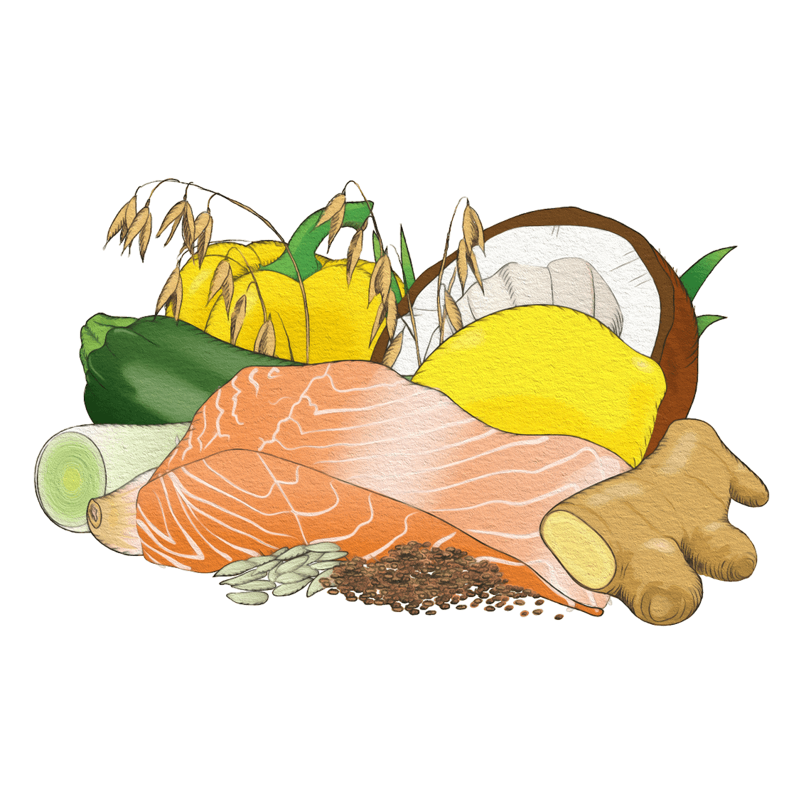 100% ekologisk lax, kokosmjölk och grönsaker - inget annat.