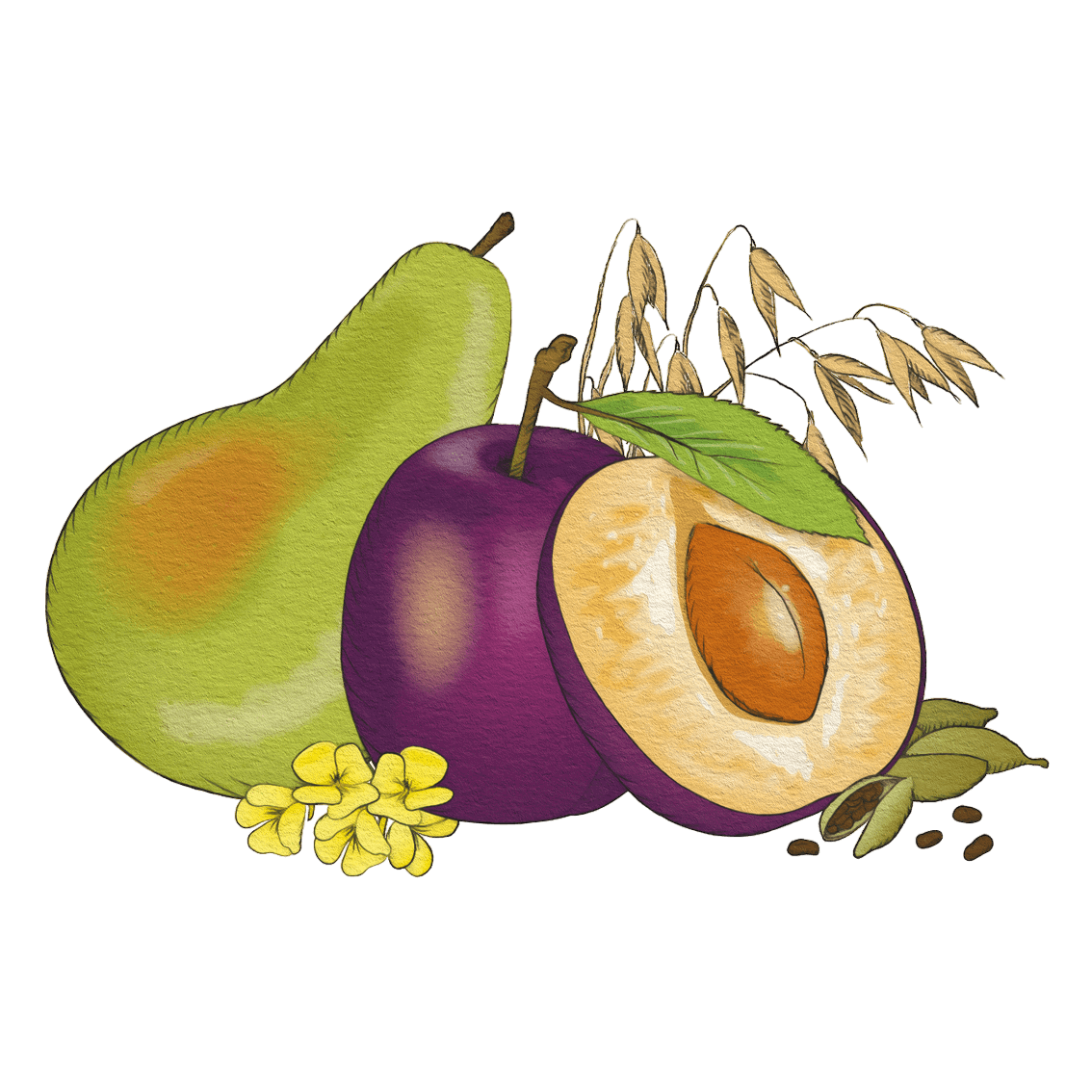Havrebaserad gröt gjord på mjuka päron och saftiga plommon. Naturlig källa till kostfiber och innehåller essentiella fettsyror.