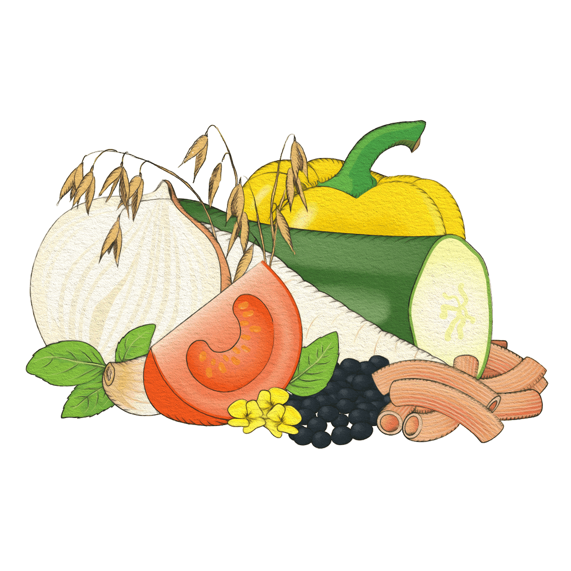 100% ekologiska Röda linser, havreris och grönsaker - inget annat.