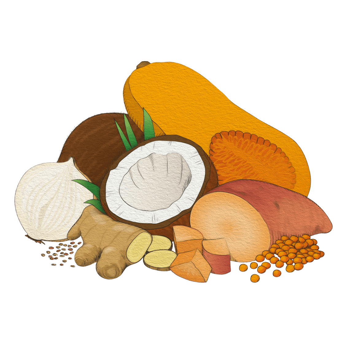 100% ekologiska linser, butternutsquash, kokosmjölk, quinoa och grönsaker - inget annat.